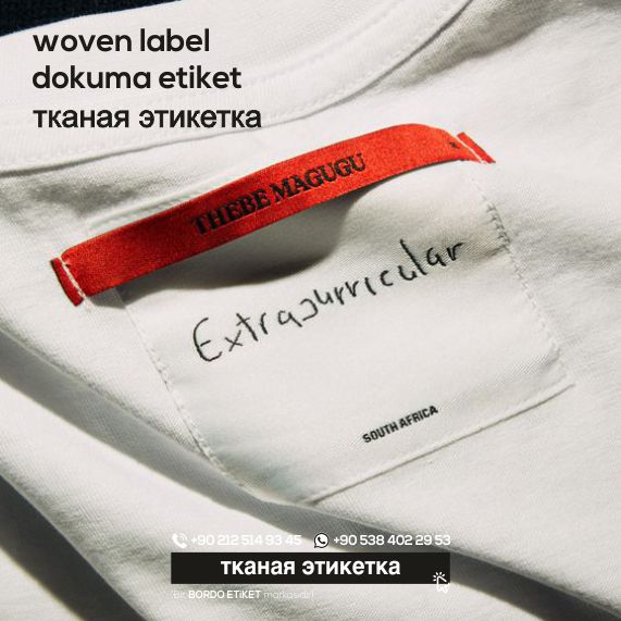 Тканые этикетки называются уток сатин, сатин и тафта в зависимости от их методов производства и типов качества. Тканая этикетка является незаменимым рекламным продуктом для любой компании, которая доверяет своему продукту с точки зрения качества и придает большое значение престижу своего бренда.